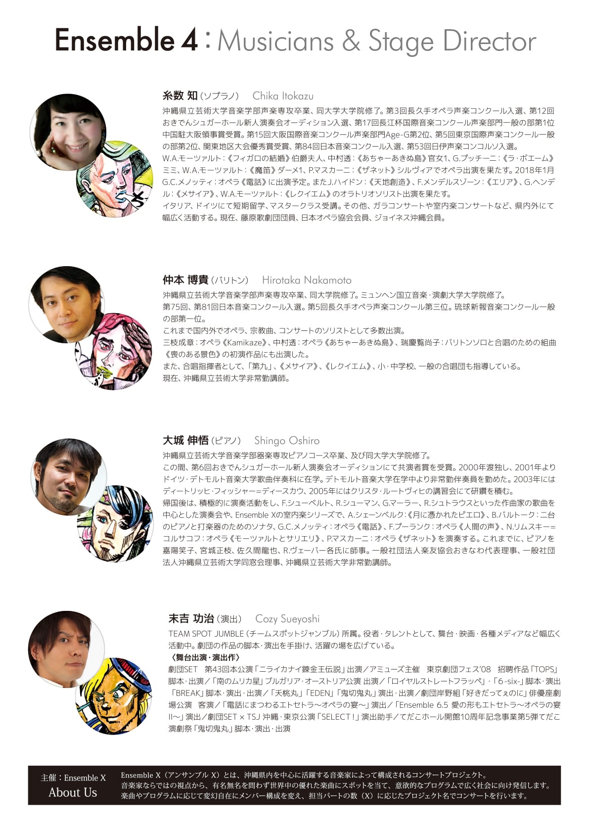 Created a series of promotional materials for “Ensemble 4” a classical concert by “Ensemble X” a project led by Okinawan pianist Shingo Oshiro.