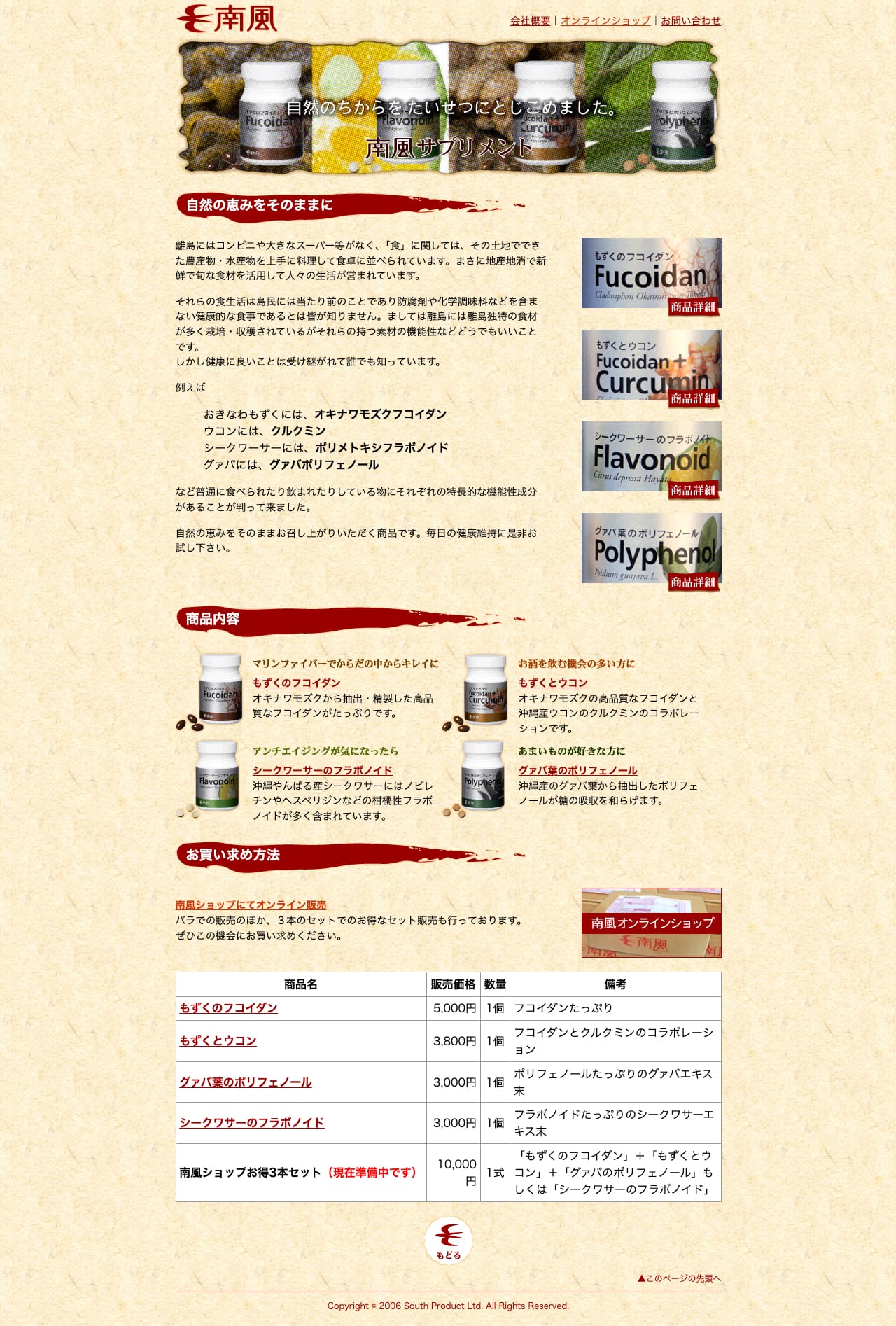 オキナワモズクを原料にフコイダンを工業的に生産する技術ベンチャー、サウスプロダクトのオリジナル商品ブランドサイトを制作。