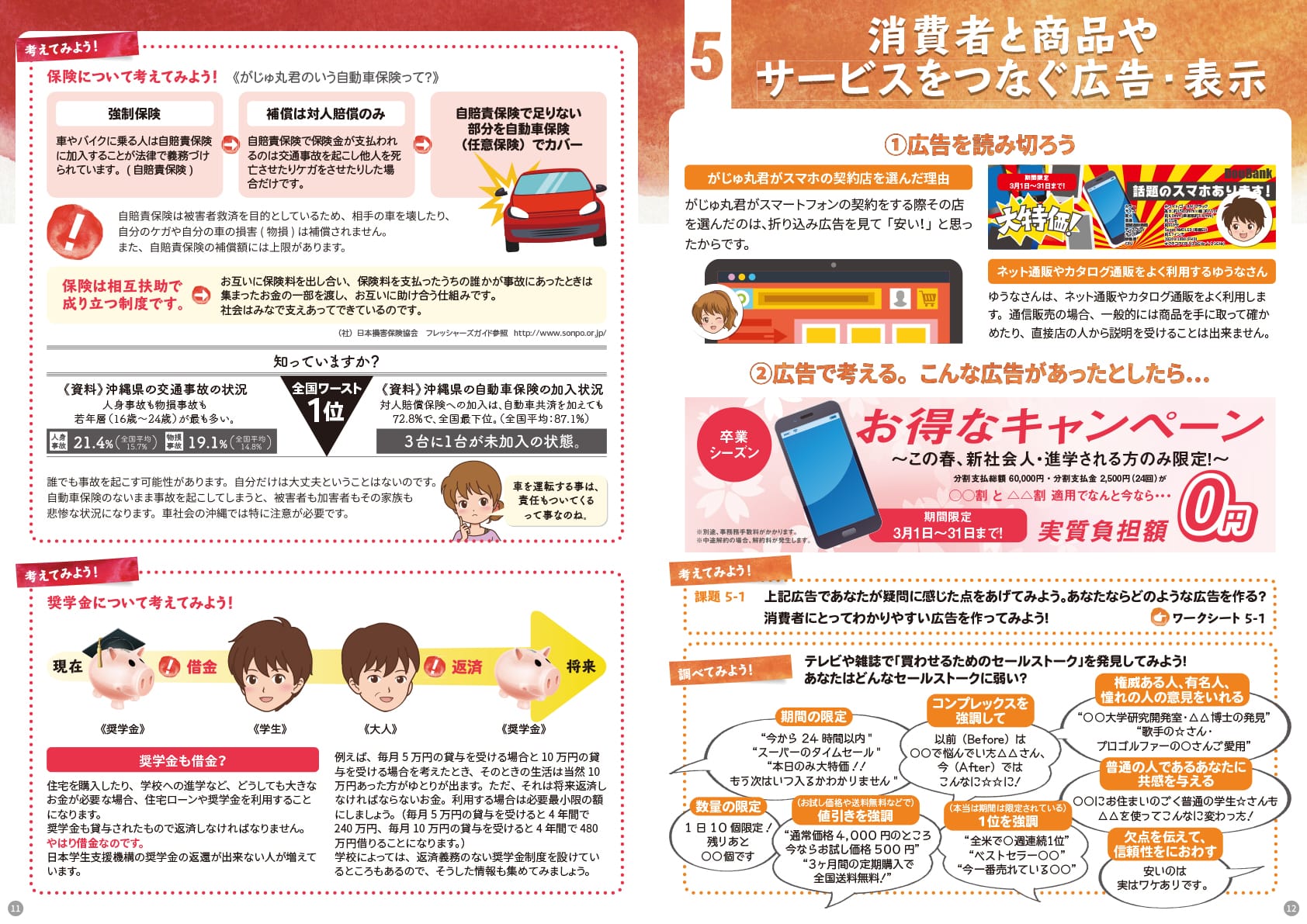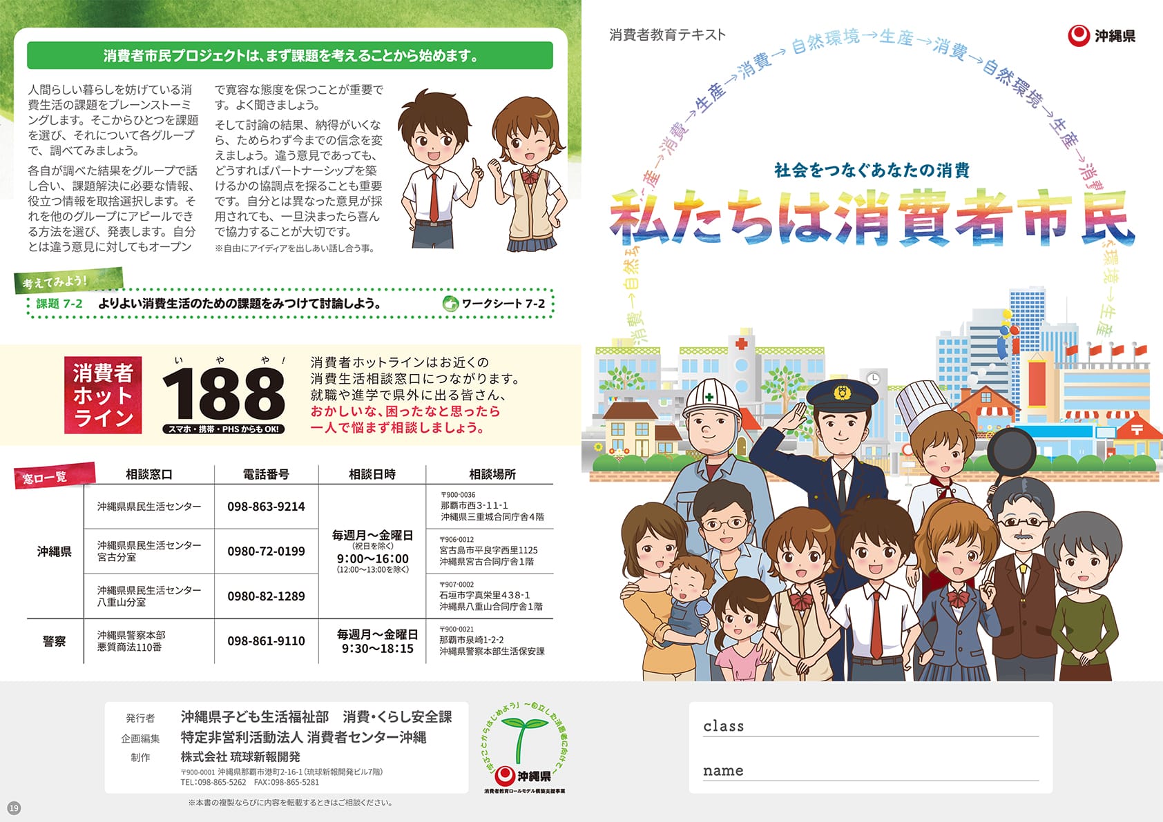 消費者トラブルを未然に防ぐため、沖縄県が独自で開設した「消費者教育ポータルサイト」の告知用ポスターと、主に中高生の教材用としての「消費者教育テキスト」を制作。